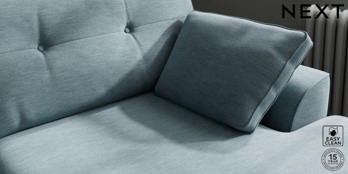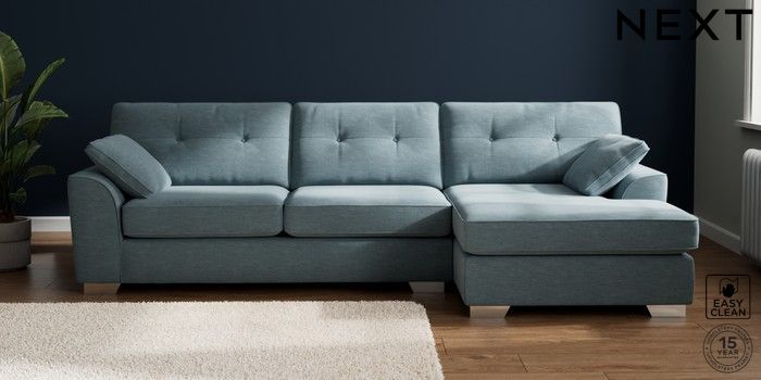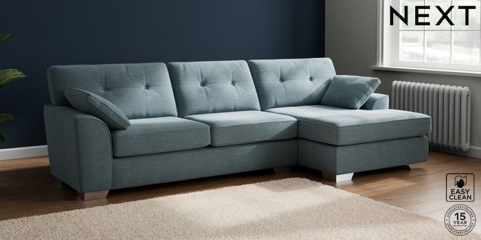7.2.10 Stamford Buttoned Back Large Sofa Chaise - Right Hand Fine Chenille Easy Clean Mid Blue Large Square Angle - Chrome Metal | Made Click here to use our website with more accessibility support, for example screen readers