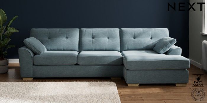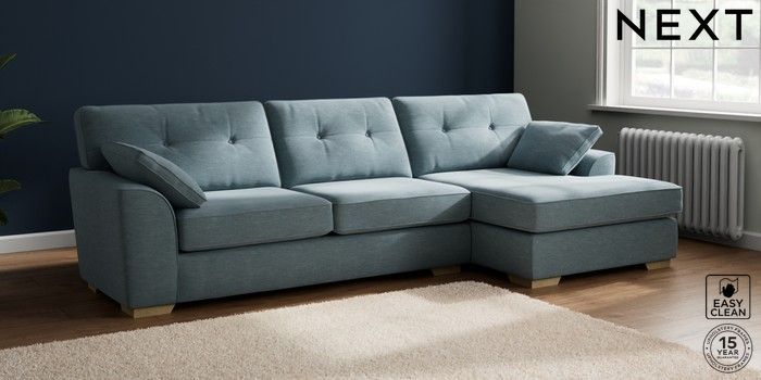 7.2.10 Stamford Buttoned Back Large Sofa Chaise - Right Hand Fine Chenille Easy Clean Mid Blue Large Square Angle - Light | Made Click here to use our website with more accessibility support, for example screen readers