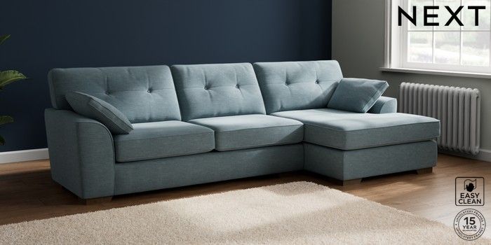 7.2.10 Stamford Buttoned Back Large Sofa Chaise - Right Hand Fine Chenille Easy Clean Mid Blue Large Square Angle - Mid | Made Click here to use our website with more accessibility support, for example screen readers