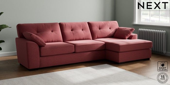 7.2.10 Stamford Buttoned Back Large Sofa Chaise - Right Hand Fine Chenille Easy Clean Mid Pink Large Square Angle - Dark | Made Click here to use our website with more accessibility support, for example screen readers