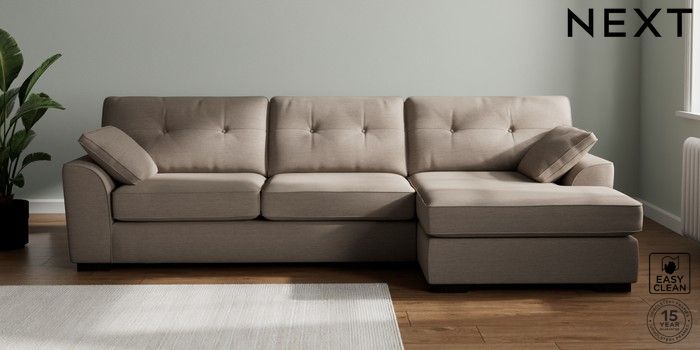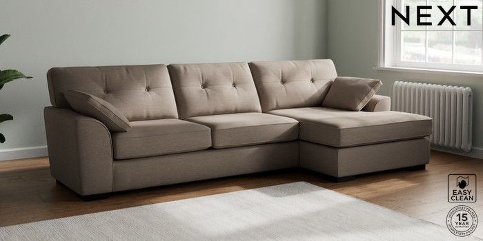7.2.10 Stamford Buttoned Back Large Sofa Chaise - Right Hand Fine Chenille Easy Clean Mid Taupe Brown Large Square Angle - Dark | Made Click here to use our website with more accessibility support, for example screen readers