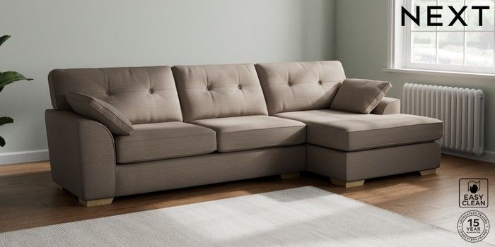 7.2.10 Stamford Buttoned Back Large Sofa Chaise - Right Hand Fine Chenille Easy Clean Mid Taupe Brown Large Square Angle - Light | Made Click here to use our website with more accessibility support, for example screen readers