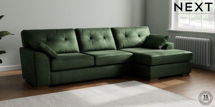 7.2.10 Stamford Buttoned Back Large Sofa Chaise - Right Hand Luxe Chenille Dark Green Large Square Angle - Mid | Made Click here to use our website with more accessibility support, for example screen readers