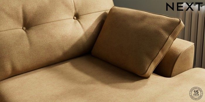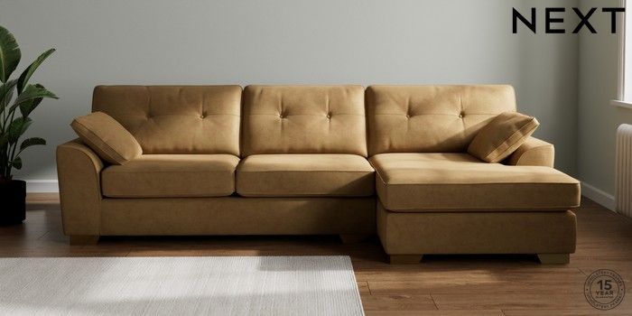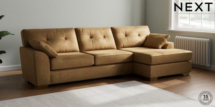 7.2.10 Stamford Buttoned Back Large Sofa Chaise - Right Hand Luxe Chenille Honey Yellow Large Square Angle - Brushed Brass | Made Click here to use our website with more accessibility support, for example screen readers
