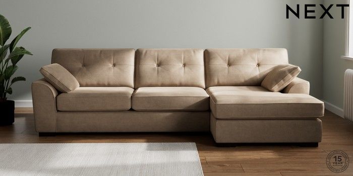7.2.10 Stamford Buttoned Back Large Sofa Chaise - Right Hand Luxe Chenille Mid Camel Beige Large Square Angle - Dark | Made Click here to use our website with more accessibility support, for example screen readers
