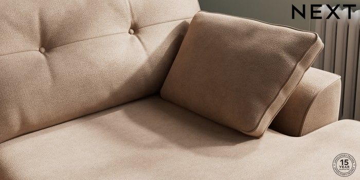 7.2.10 Stamford Buttoned Back Large Sofa Chaise - Right Hand Luxe Chenille Mid Natural Large Square Angle - Brushed Brass | Made Click here to use our website with more accessibility support, for example screen readers