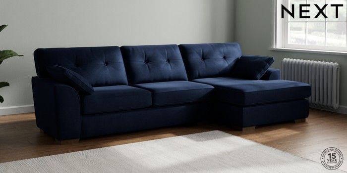 7.2.10 Stamford Buttoned Back Large Sofa Chaise - Right Hand Luxe Chenille Navy Blue Large Square Angle - Mid | Made Click here to use our website with more accessibility support, for example screen readers