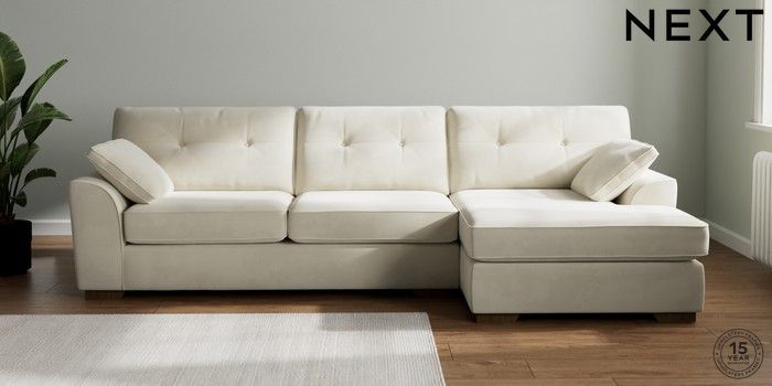 7.2.10 Stamford Buttoned Back Large Sofa Chaise - Right Hand Luxe Chenille Oyster Large Square Angle - Mid | Made Click here to use our website with more accessibility support, for example screen readers