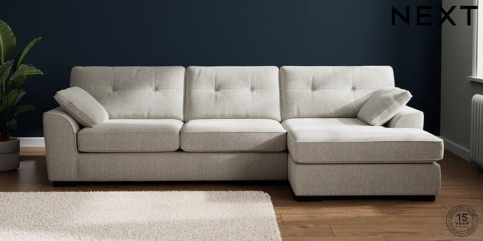 7.2.10 Stamford Buttoned Back Large Sofa Chaise - Right Hand Multi Weave Light Blue Large Square Angle - Dark | Made Click here to use our website with more accessibility support, for example screen readers