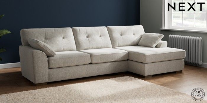7.2.10 Stamford Buttoned Back Large Sofa Chaise - Right Hand Multi Weave Light Blue Large Square Angle - Mid | Made Click here to use our website with more accessibility support, for example screen readers