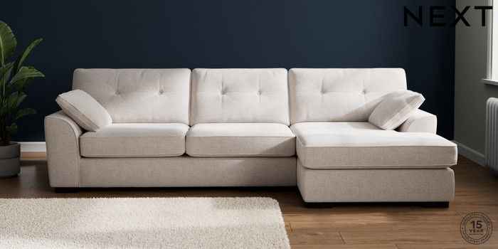 7.2.10 Stamford Buttoned Back Large Sofa Chaise - Right Hand Multi Weave Oyster Large Square Angle - Dark | Made Click here to use our website with more accessibility support, for example screen readers