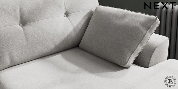 7.2.10 Stamford Buttoned Back Large Sofa Chaise - Right Hand Natural Mix Light Grey Large Square Angle - Brushed Brass | Made Click here to use our website with more accessibility support, for example screen readers
