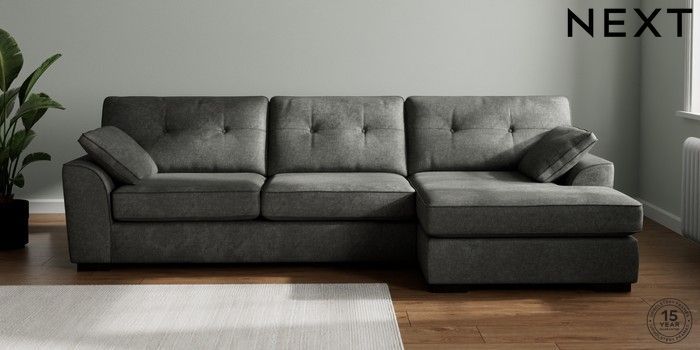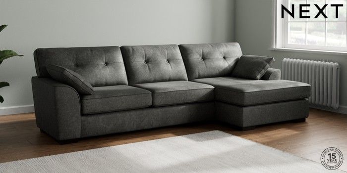 7.2.10 Stamford Buttoned Back Large Sofa Chaise - Right Hand Plush Chenille Dark Grey Large Square Angle - Dark | Made Click here to use our website with more accessibility support, for example screen readers