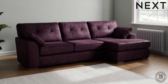 7.2.10 Stamford Buttoned Back Large Sofa Chaise - Right Hand Plush Chenille Dark Plum Purple Large Square Angle - Mid | Made Click here to use our website with more accessibility support, for example screen readers