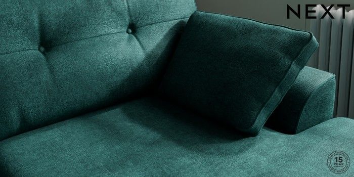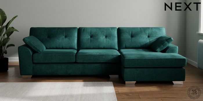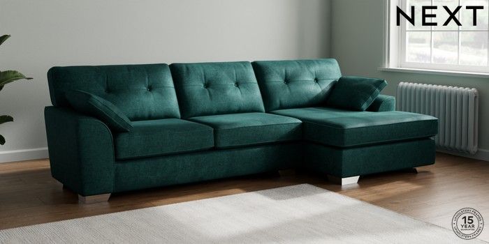 7.2.10 Stamford Buttoned Back Large Sofa Chaise - Right Hand Plush Chenille Dark Teal Green Large Square Angle - Chrome Metal | Made Click here to use our website with more accessibility support, for example screen readers