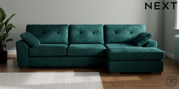 7.2.10 Stamford Buttoned Back Large Sofa Chaise - Right Hand Plush Chenille Dark Teal Green Large Square Angle - Mid | Made Click here to use our website with more accessibility support, for example screen readers