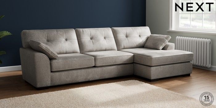7.2.10 Stamford Buttoned Back Large Sofa Chaise - Right Hand Plush Chenille Light Grey Large Square Angle - Dark | Made Click here to use our website with more accessibility support, for example screen readers