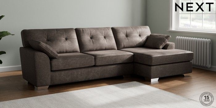 7.2.10 Stamford Buttoned Back Large Sofa Chaise - Right Hand Plush Chenille Mink Brown Large Square Angle - Chrome Metal | Made Click here to use our website with more accessibility support, for example screen readers