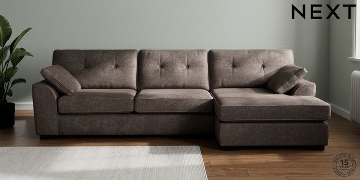 7.2.10 Stamford Buttoned Back Large Sofa Chaise - Right Hand Plush Chenille Mink Brown Large Square Angle - Dark | Made Click here to use our website with more accessibility support, for example screen readers