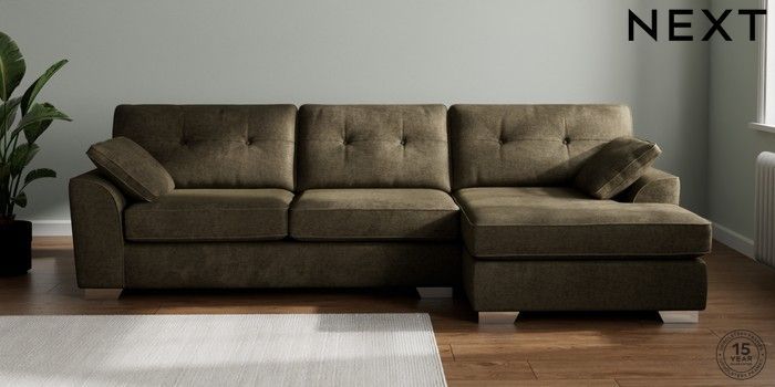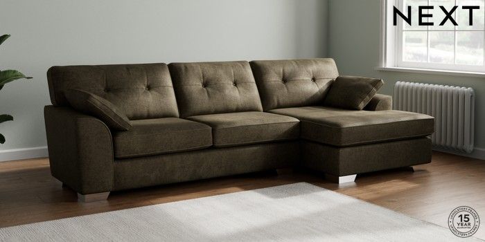 7.2.10 Stamford Buttoned Back Large Sofa Chaise - Right Hand Plush Chenille Moss Green Large Square Angle - Chrome Metal | Made Click here to use our website with more accessibility support, for example screen readers