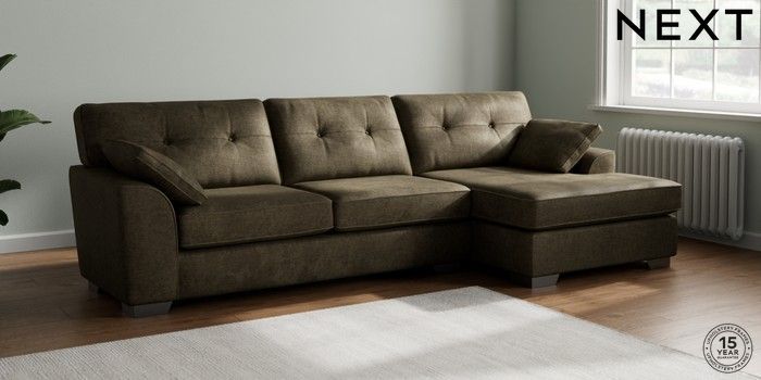 7.2.10 Stamford Buttoned Back Large Sofa Chaise - Right Hand Plush Chenille Moss Green Large Square Angle - Gunmetal | Made Click here to use our website with more accessibility support, for example screen readers