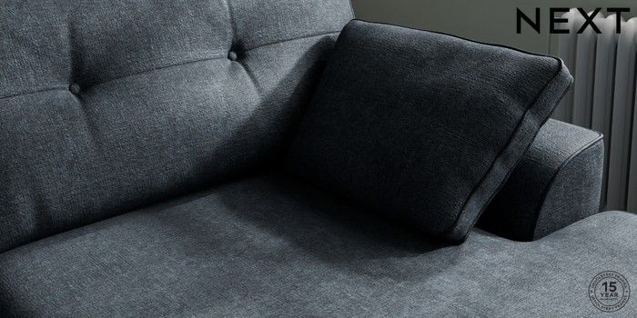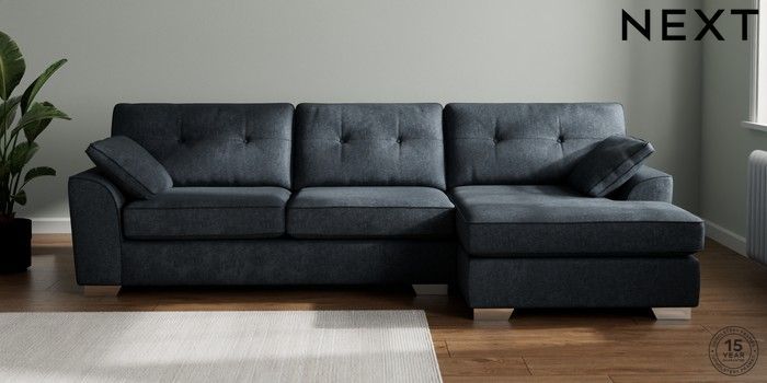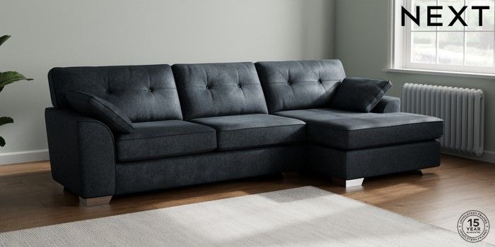 7.2.10 Stamford Buttoned Back Large Sofa Chaise - Right Hand Plush Chenille Slate Blue Large Square Angle - Chrome Metal | Made Click here to use our website with more accessibility support, for example screen readers