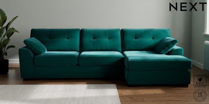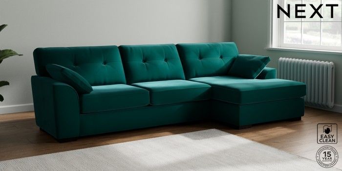 7.2.10 Stamford Buttoned Back Large Sofa Chaise - Right Hand Plush Velvet Easy Clean Juniper Green Large Square Angle - Dark | Made Click here to use our website with more accessibility support, for example screen readers