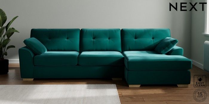 7.2.10 Stamford Buttoned Back Large Sofa Chaise - Right Hand Plush Velvet Easy Clean Juniper Green Large Square Angle - Light | Made Click here to use our website with more accessibility support, for example screen readers