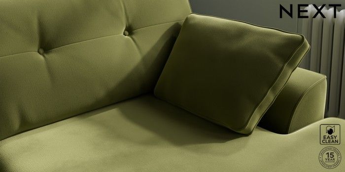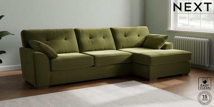 7.2.10 Stamford Buttoned Back Large Sofa Chaise - Right Hand Plush Velvet Easy Clean Mid Olive Green Large Square Angle - Mid | Made Click here to use our website with more accessibility support, for example screen readers