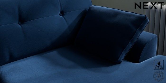 7.2.10 Stamford Buttoned Back Large Sofa Chaise - Right Hand Plush Velvet Easy Clean Navy Blue Large Square Angle - Brushed Brass | Made Click here to use our website with more accessibility support, for example screen readers