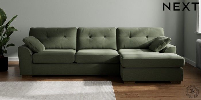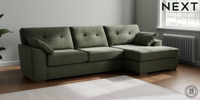 7.2.10 Stamford Buttoned Back Large Sofa Chaise - Right Hand Relaxed Linen Look Dark Green Large Square Angle - Mid | Made Click here to use our website with more accessibility support, for example screen readers