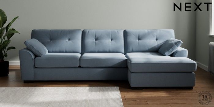 7.2.10 Stamford Buttoned Back Large Sofa Chaise - Right Hand Relaxed Linen Look Mid Blue Large Square Angle - Dark | Made Click here to use our website with more accessibility support, for example screen readers