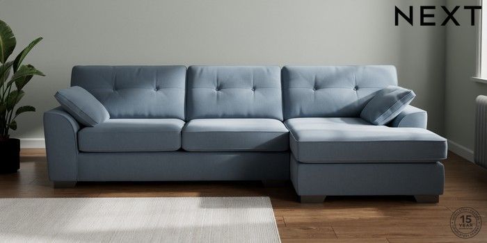 7.2.10 Stamford Buttoned Back Large Sofa Chaise - Right Hand Relaxed Linen Look Mid Blue Large Square Angle - Gunmetal | Made Click here to use our website with more accessibility support, for example screen readers