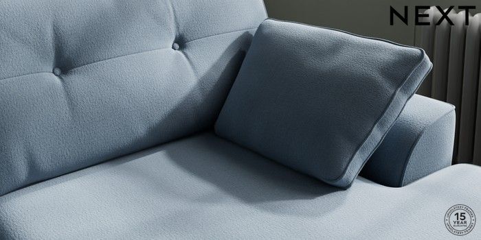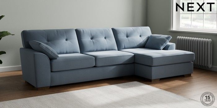 7.2.10 Stamford Buttoned Back Large Sofa Chaise - Right Hand Relaxed Linen Look Mid Blue Large Square Angle - Mid | Made Click here to use our website with more accessibility support, for example screen readers
