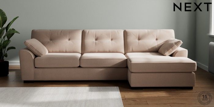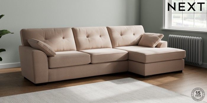 7.2.10 Stamford Buttoned Back Large Sofa Chaise - Right Hand Relaxed Linen Look Mid Natural Large Square Angle - Dark | Made Click here to use our website with more accessibility support, for example screen readers