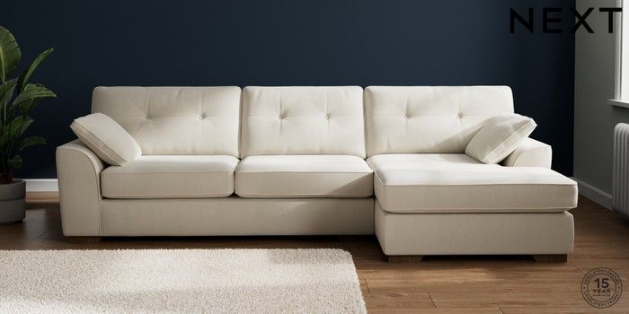 7.2.10 Stamford Buttoned Back Large Sofa Chaise - Right Hand Relaxed Linen Look Oyster Large Square Angle - Mid | Made Click here to use our website with more accessibility support, for example screen readers