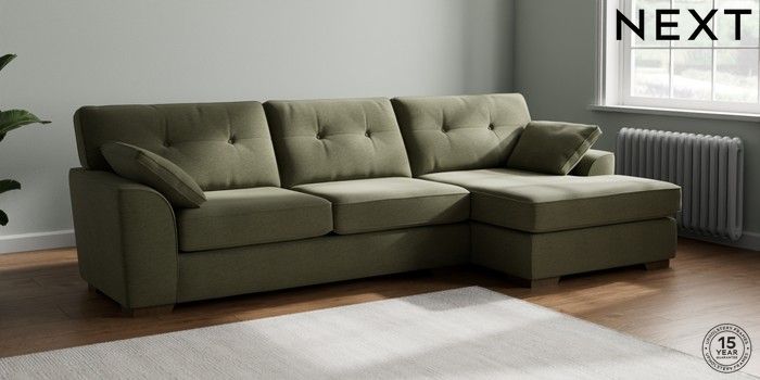 7.2.10 Stamford Buttoned Back Large Sofa Chaise - Right Hand Ripple Chenille Mid Moss Green Large Square Angle - Mid | Made Click here to use our website with more accessibility support, for example screen readers