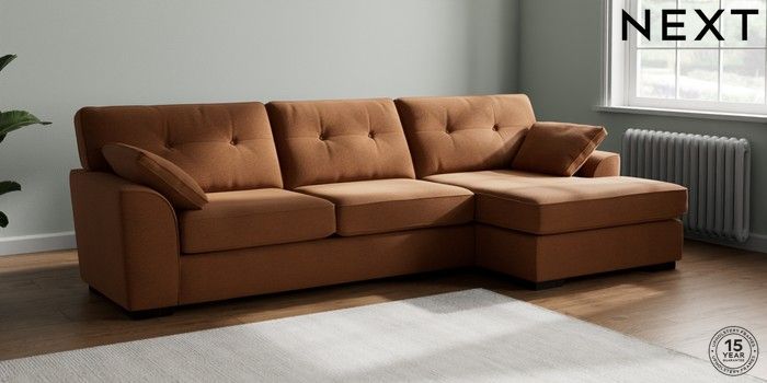 7.2.10 Stamford Buttoned Back Large Sofa Chaise - Right Hand Ripple Chenille Mid Rust Brown Large Square Angle - Dark | Made Click here to use our website with more accessibility support, for example screen readers