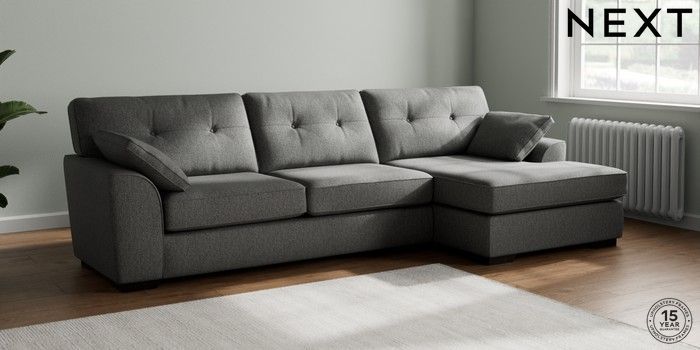 7.2.10 Stamford Buttoned Back Large Sofa Chaise - Right Hand Tweedy Chenille Dark Grey Large Square Angle - Dark | Made Click here to use our website with more accessibility support, for example screen readers
