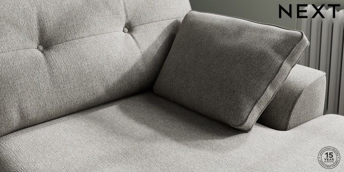 7.2.10 Stamford Buttoned Back Large Sofa Chaise - Right Hand Tweedy Chenille Mid Grey Large Square Angle - Brushed Brass | Made Click here to use our website with more accessibility support, for example screen readers
