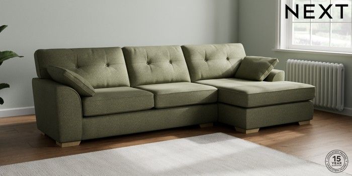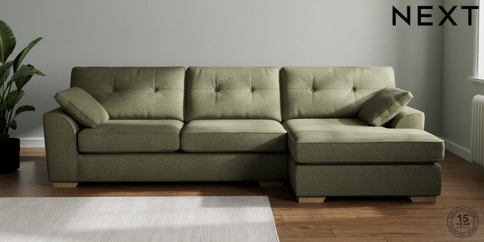 7.2.10 Stamford Buttoned Back Large Sofa Chaise - Right Hand Tweedy Chenille Mid Moss Green Large Square Angle - Light | Made Click here to use our website with more accessibility support, for example screen readers