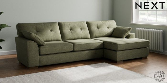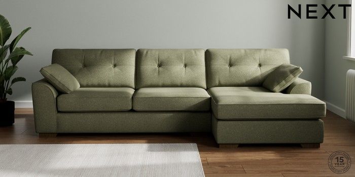 7.2.10 Stamford Buttoned Back Large Sofa Chaise - Right Hand Tweedy Chenille Mid Moss Green Large Square Angle - Mid | Made Click here to use our website with more accessibility support, for example screen readers