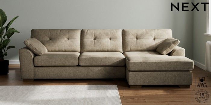7.2.10 Stamford Buttoned Back Large Sofa Chaise - Right Hand Woven Chenille Easy Clean Mid Natural Large Square Angle - Mid | Made Click here to use our website with more accessibility support, for example screen readers