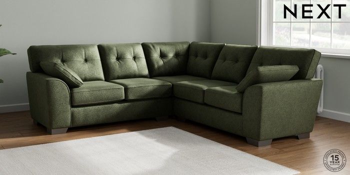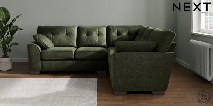 7.2.10 Stamford Buttoned Back Medium Corner Sofa - Universal Boucle Chenille Dark Moss Green Large Square Angle - Gunmetal | Made Click here to use our website with more accessibility support, for example screen readers