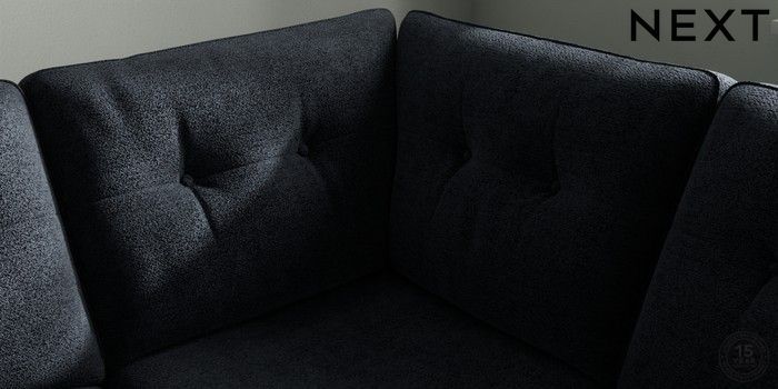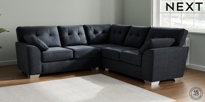 7.2.10 Stamford Buttoned Back Medium Corner Sofa - Universal Boucle Chenille Dark Slate Blue Large Square Angle - Chrome Metal | Made Click here to use our website with more accessibility support, for example screen readers