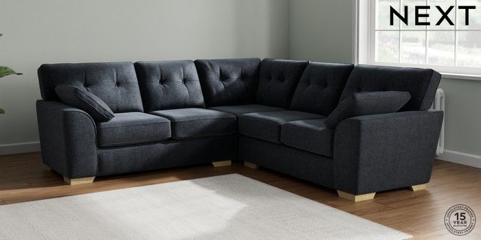 7.2.10 Stamford Buttoned Back Medium Corner Sofa - Universal Boucle Chenille Dark Slate Blue Large Square Angle - Light | Made Click here to use our website with more accessibility support, for example screen readers
