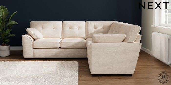 7.2.10 Stamford Buttoned Back Medium Corner Sofa - Universal Boucle Chenille Oyster Large Square Angle - Dark | Made Click here to use our website with more accessibility support, for example screen readers