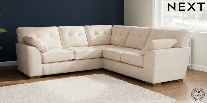 7.2.10 Stamford Buttoned Back Medium Corner Sofa - Universal Boucle Chenille Oyster Large Square Angle - Mid | Made Click here to use our website with more accessibility support, for example screen readers