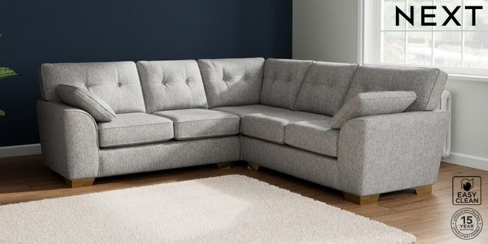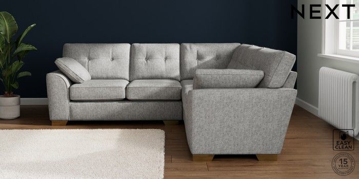 7.2.10 Stamford Buttoned Back Medium Corner Sofa - Universal Chunky Boucle Easy Clean Light Grey Large Square Angle - Brushed Brass | Made Click here to use our website with more accessibility support, for example screen readers