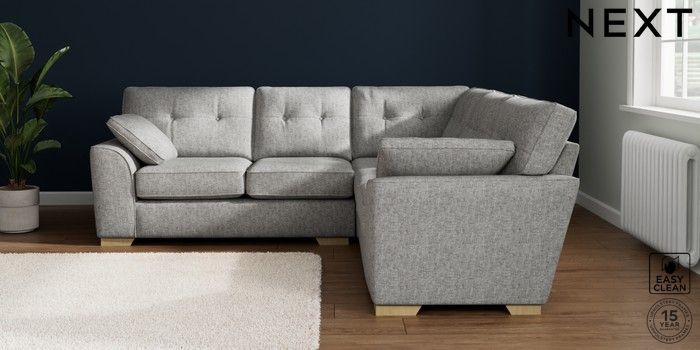 7.2.10 Stamford Buttoned Back Medium Corner Sofa - Universal Chunky Boucle Easy Clean Light Grey Large Square Angle - Light | Made Click here to use our website with more accessibility support, for example screen readers
